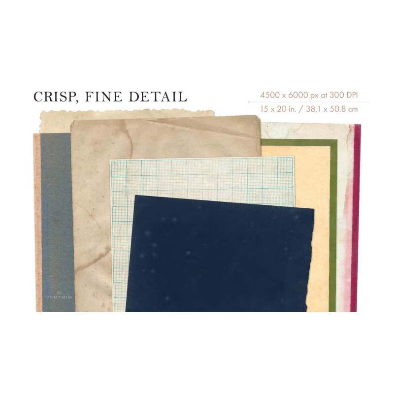 Create instant vintage photo effects. In addition to backgrounds, these papers can be used as texture overlays. Simply place one or more paper textures on top of your artwork and adjust the blending mode. (We love Multiply or Overlay for organic, antique effects.)