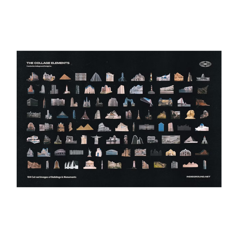 The Collage Elements PNG Collection by Indieground This amazing product made by the Indieground Team is the definitive collection of 1509 elements for a master collage creator. It gives you a quick & easy graphic resource that you can use to make rad collage artwork. The collection is composed of real hand-cut images, in a mix of both rough and accurate cut-through for an authentic effect. The images were researched & found through vintage magazines, postcards, books, and digital printed material, scanned at 1600 dpi, and then individually isolated and exported as 300 dpi PNGs with a transparent background. The result is an incredible collection of authentic-looking cutouts easy to use and perfect for your creative projects such as posters, art prints, vintage artworks, apparel design, Instagram and other social media posts or stories, and much more, with a cool retro mood & aesthetics.