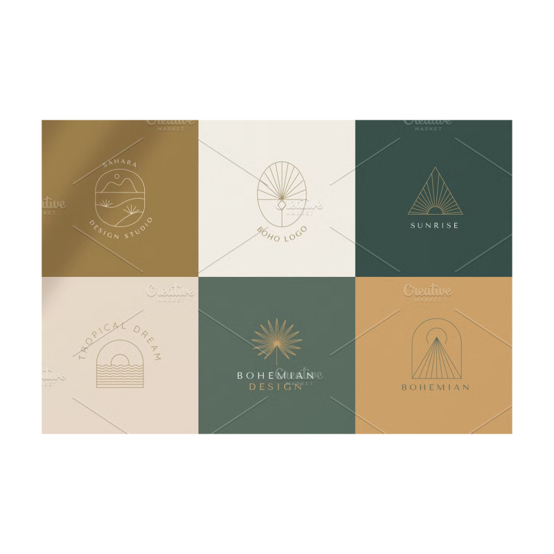 الشعارات البوهيمية - مجموعة جديدة من عناصر وقوالب تصميم المتجهات. الشعارات المجردة وعناصر العلامات التجارية بأسلوب خطي بسيط عصري وشعارات وشارات لاستوديوهات التصميم والمحلات التجارية والشركات النسائية والمنتجات المصنوعة يدويا.