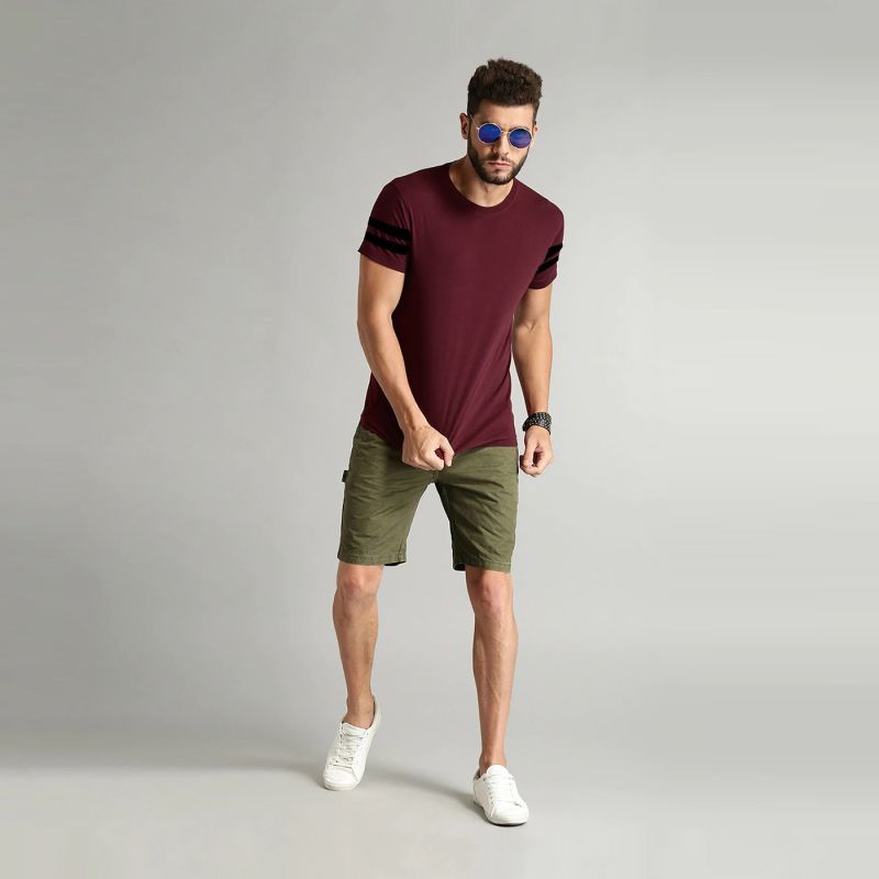 تي شيرت صلب من المارون، بياقة مستديرة، أكمام قصيرة.