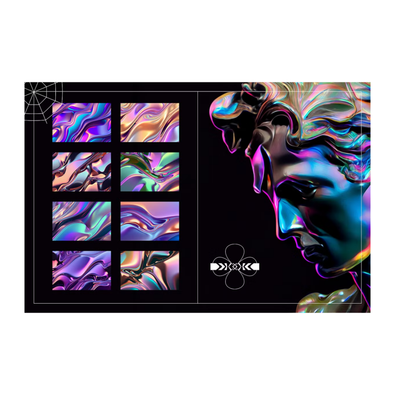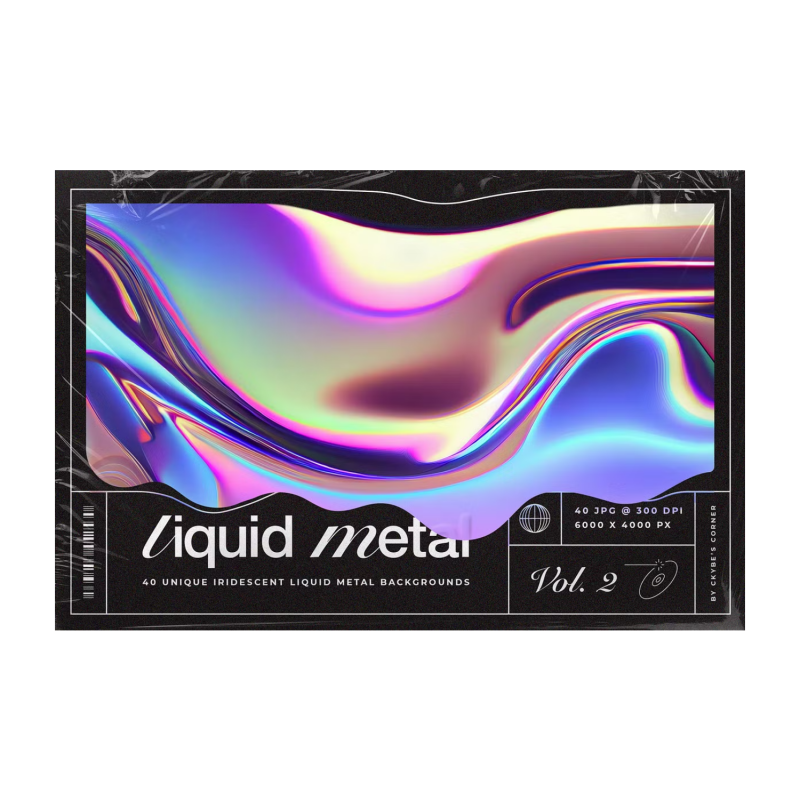 Introducing Liquid Metal | Iridescent Trend. It's the second volume of our Liquid Metal collection. Liquid iridescent metal graphic textures are digital graphic design elements that mimic the appearance of liquid metal with an iridescent or metallic shine. These textures are created using a combination of digital art techniques. They can be used in a variety of design projects, including websites, logos, print materials, and digital media such as Instagram.