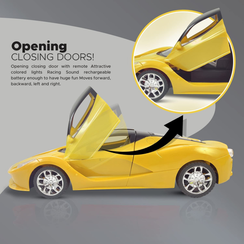 • Car doors open and close in style and can be remote controlled. LED head lamps make it even more appealing.