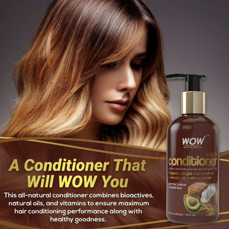 • Wow Hair Conditioner incorporates certified bio actives wheat protein, virgin coconut oil, avocado oil, sweet almond oil, castor oil, jojoba oil and arga oil to ensure maximum performance. Ideal For Men & Women